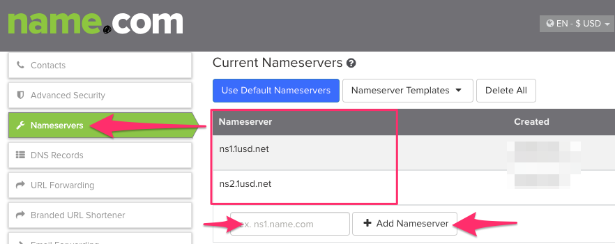 - ثم اضف النيم سيرفر الخاص بالاستضافة واضغط علي Add Nameserver.